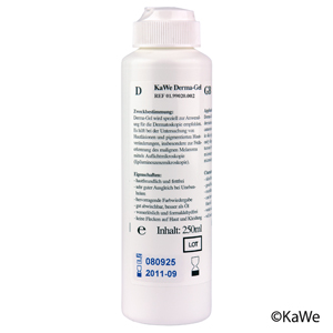 - Kostuttamalla iho dermatoskooppi geelillä vältetään ihon refleksit ja häiritsevä efekti tehdään näkymättömäksi, jolloin ihon todellinen väri pystytään tunnistamaan