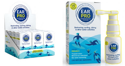 • EarPro-korvasuihketta käytetään ehkäisemään veden jäämistä korvakäytävään. Se on valmistettu parafiini- ja oreganoöljystä.