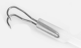 Elastinen koukku, terävä, 7 mm, kaksihaarakoukku. Materiaali silikoni/ruostumaton teräs. Pakkauskoko 4 kpl/ltk.