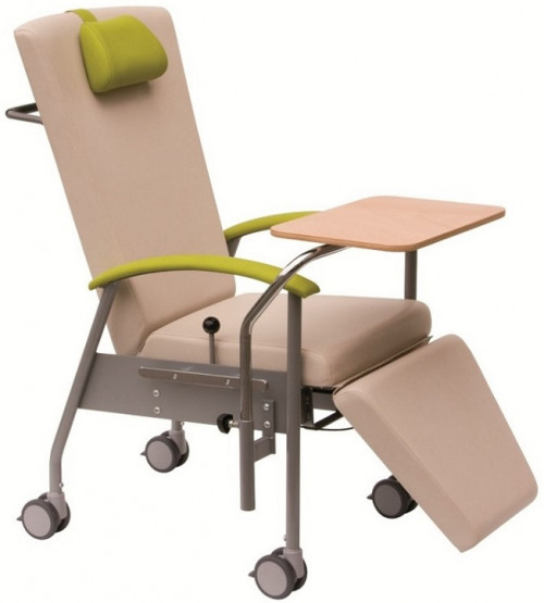 Se on joko kiinteä tuoli, ilman pyöriä (tuotenro. 4490000) tai pyörillä varustettu liikuteltava tuoli (tuotenro. 4490200). G-tuoli on tilavasti mitoitettu ja verhoilu on saatavissa useissa eri väreissä erittäin pehmeästä Greiner premium-materiaaleista. Pehmeät käsinojat takaavat potilaalle miellyttävän istuskeluhetken.