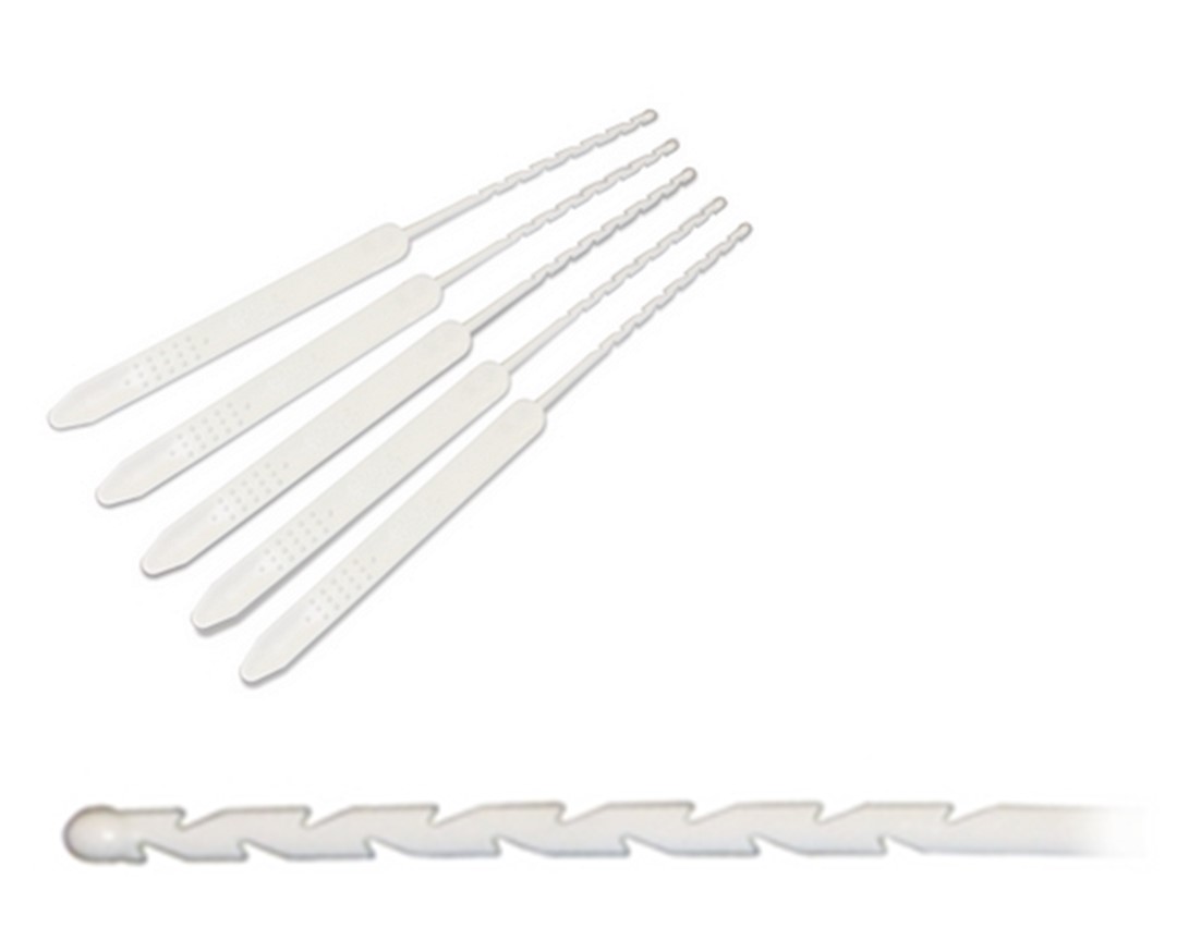 Steriili, kertakäyttöinen ja joustava. 7 lovea kierukan lankojen hakemiseen. 5 kpl/pkt