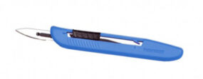 Tapaturmien ehkäisyä varten kehitetty, turvaterällä varustettu kertakäyttöinen leikkausveitsi. Terä liukuu helposti ulos lukittuun tilaan. Käytön jälkeen liu´uta terä takaisin kahvan sisään kunnes kuulet naksahduksen. Kahva on uritettu hyvän otteen saamiseksi. Steriili. Säilyvyysaika 5 vuotta valmistusajankohdasta. 10 kpl/ltk.