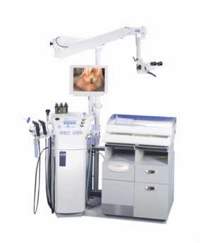 Laaja lisävarustevalikoima mm. mikroskooppi, diatermia, korvanhuuhtelujärjestelmä, videojärjestelmä ja paineilmajärjestelmä.