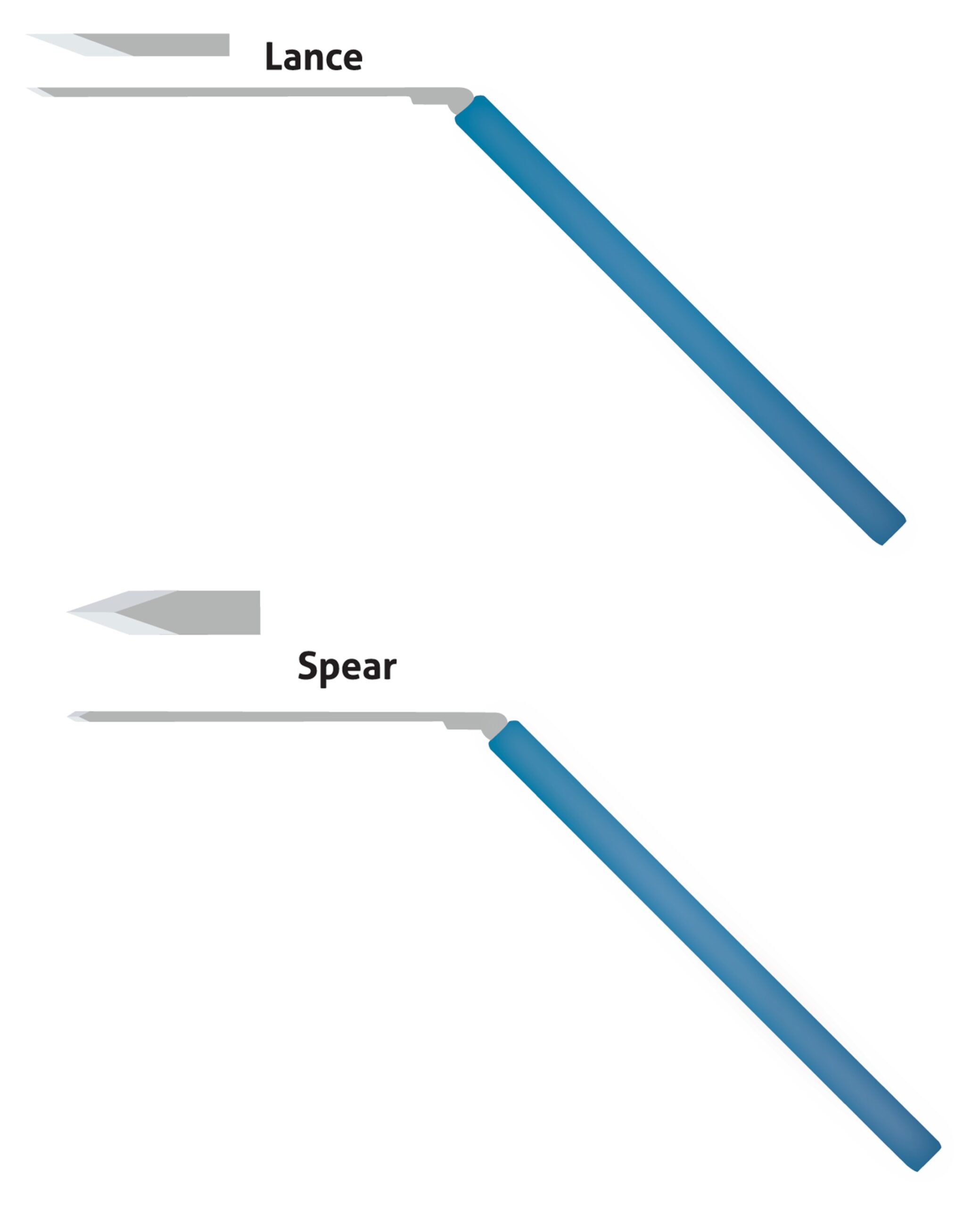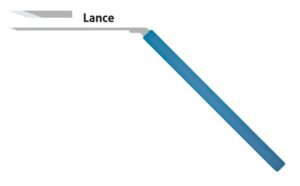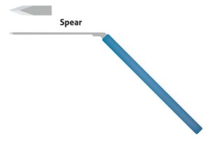 - Lance tip, Downward cut, Narrow shaft.