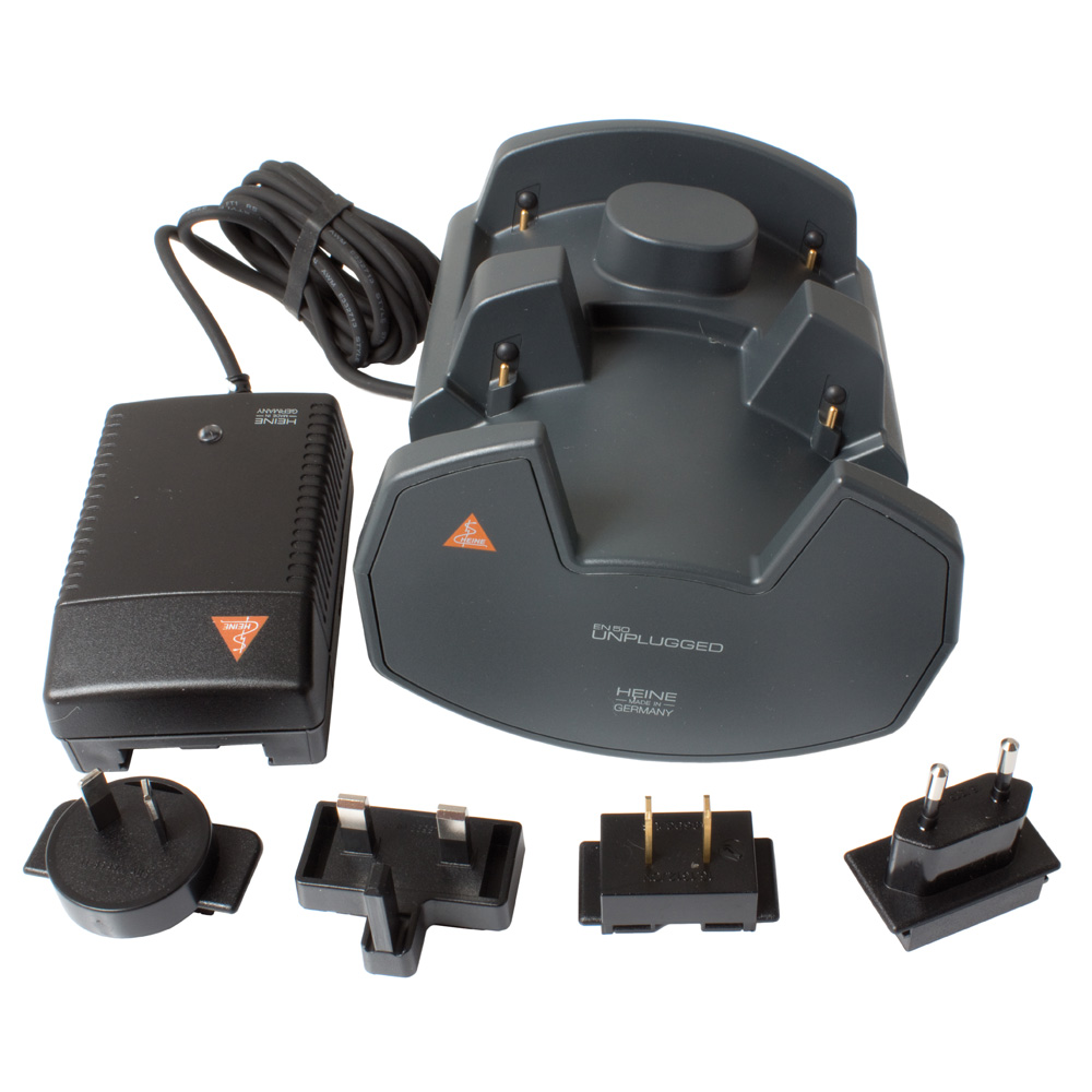 Älykäs latauslaite Heine-otsalampulle. Lataava seinäteline toimii samaan aikaan otsalampun pitimenä ja latauslaitteena.