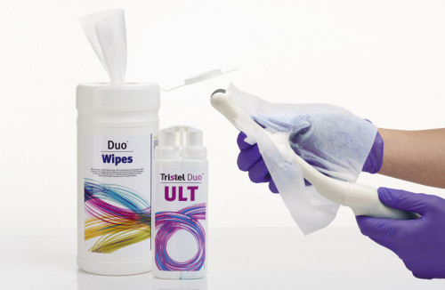 Tristel Duo ultraääniantureiden desinfektioaine on suunniteltu erityisesti invasiivisten uä-antureiden (kuten vaginaaliset ja rektaaliset) desinfektioon potilaiden välissä. Vaikka antureiden suojana käytetään nykyisin useimmiten anturinsuojia, tulee itse laite desinfioida potilaiden välillä. Tristel Duo:lla teet sen nopeasti ja tehokkaasti.